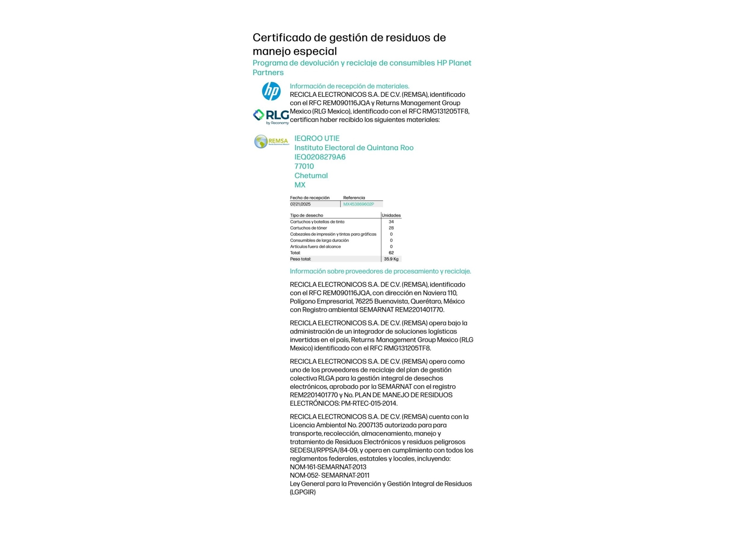 DIANA ALVARADO 24 DE JULIO 2025.— El Instituto Electoral de Quintana Roo (IEQROO) reafirma su compromiso con la sustentabilidad y el cuidado del medio ambiente al participar activamente en el programa HP Planet Partners.