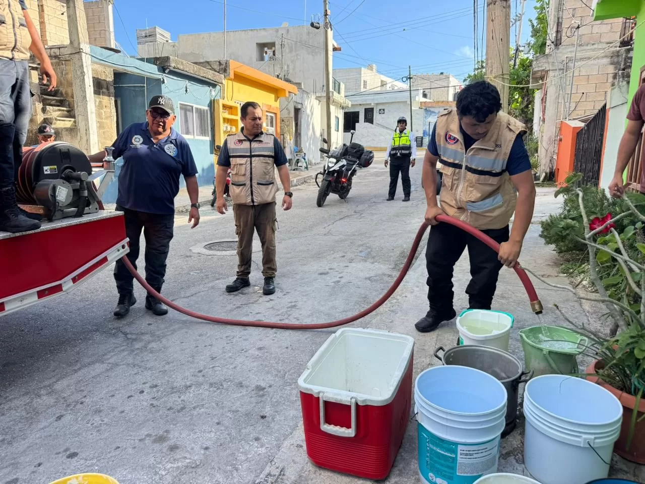 La concesionaria informó que siguen trabajando en la fuga en la tubería que abastece a la Isla, sin embargo, desde hoy en coordinación con la empresa se inició con el suministro del agua de casa en casa en diferentes colonias populares.