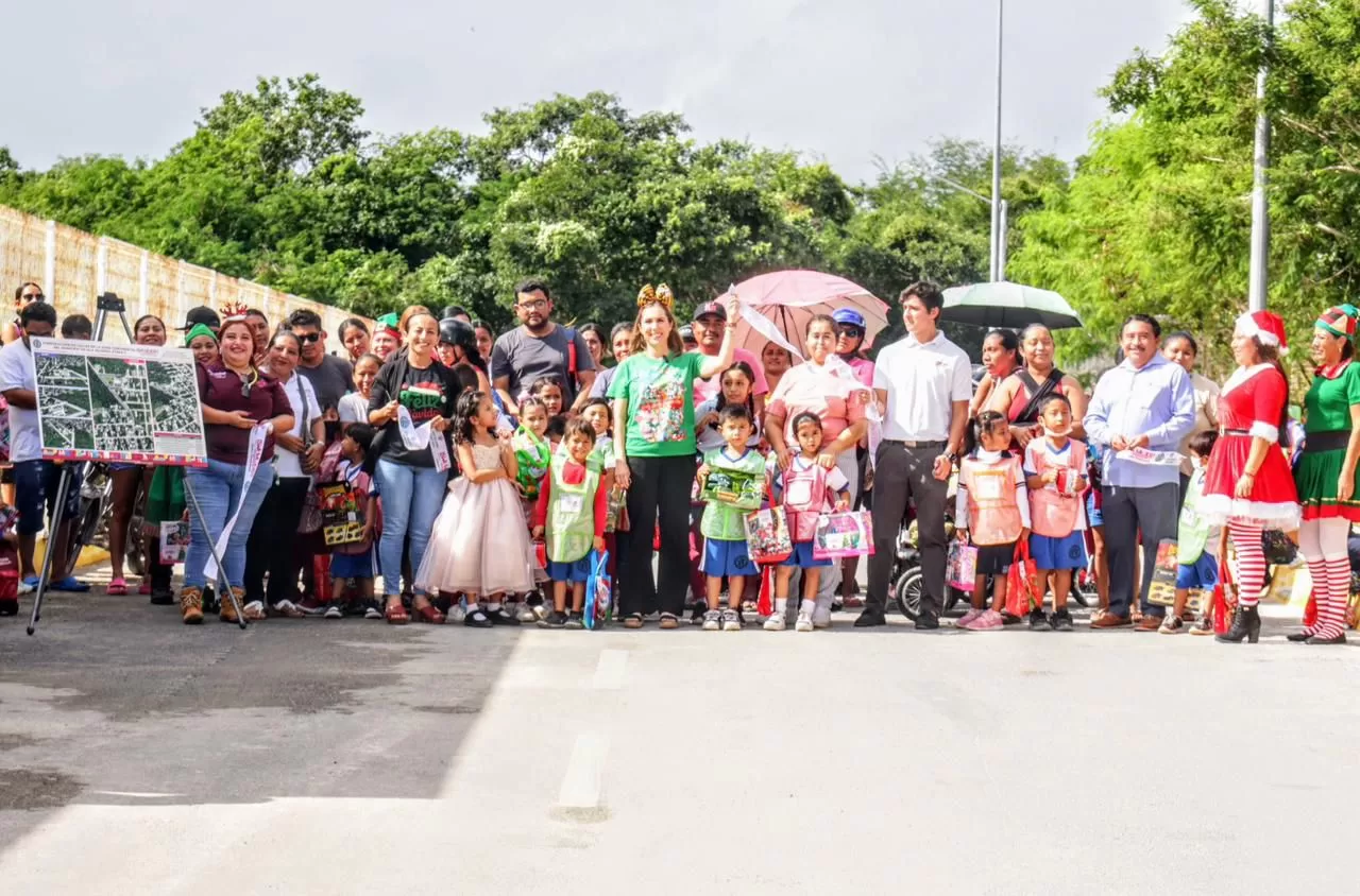 DIANA ALVARADO 10 DE DICIEMBRE 2025.— Cumpliendo un compromiso más con las familias de Ciudad Mujeres y con el objetivo de dignificar los accesos a las escuelas, la Presidenta Municipal de Isla Mujeres, Atenea Gómez Ricalde, entregó hoy la obra de pavimentación de la calle de acceso principal al kínder Matilde Petra Montoya Lafragua, ubicado en la colonia San Valentín de la Zona Continental.