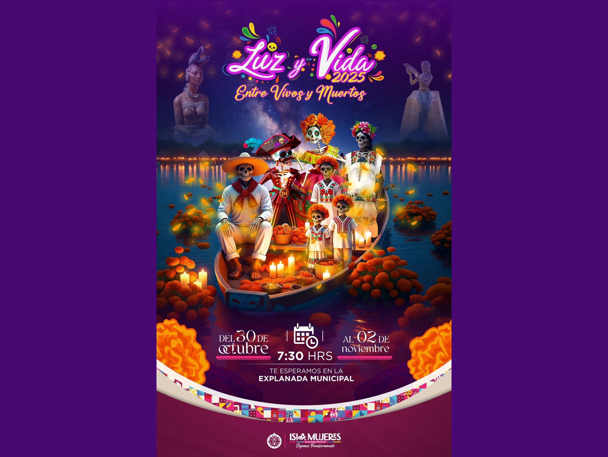 DIANA ALVARADO 15 DE OCTUBRE 2025.— El Gobierno de Isla Mujeres, encabezado por la Presidenta Municipal, Atenea Gómez Ricalde, dio a conocer el programa del Festival “Luz y Vida: Entre Vivos y Muertos”, un espacio cultural diseñado para celebrar y preservar tradiciones y promover la cultura isleña en todas sus expresiones en el marco del Día de Muertos.