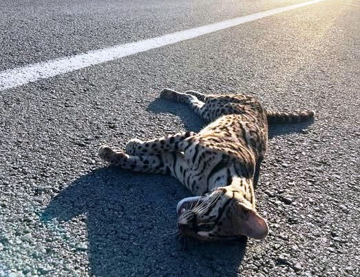 DIANA ALVARADO 26 DE ABRIL 2026.- Un ocelote fue atropellado esta mañana en la carretera de paga a El Tintal, a unos 10 kilómetros de esta ciudad.