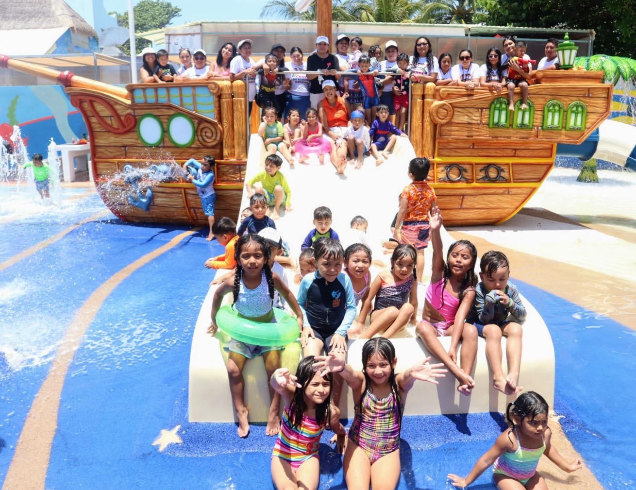 DIANA ALVARADO 30 DE ABRIL 2025.— Para celebrar el Día del Niño y de la Niña, el Sistema para el Desarrollo Integral de la Familia (DIF) llevó a las niñas y niños del CENDI “Mi Ranchito” de Zona Continental a conocer el nuevo Parque Zazil-Há, el primer parque de agua, ubicado en la zona de Playa Norte Isla Mujeres.