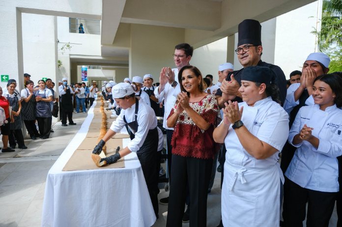 La gobernadora Mara Lezama celebró este hecho: “hoy es un gran día porque vamos a romper el récord Guinness con la torta de cochinita más larga, son 300 metros, ellas y ellos son 150 estudiantes con el chef Guillermo Álvarez” afirmó.