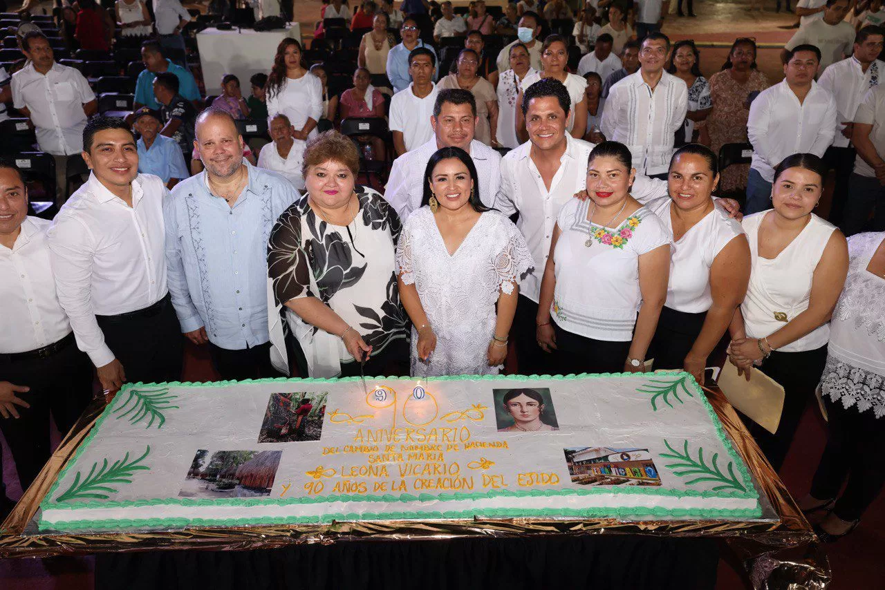 Durante la ceremonia, la presidenta municipal Blanca Merari Tziu Muñoz recordó que la Hacienda Santa María fue fundada en 1902 y que fue en 1936 cuando el entonces presidente de México, Lázaro Cárdenas del Río, decretó el cambio de nombre de la comunidad para reconocerla como Leona Vicario, destacada figura de la lucha por la Independencia de México.