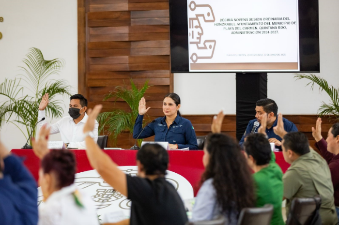 DIANA ALVARADO 30 DE JUNIO 2025.— En el marco de la Décima Novena Sesión Ordinaria del Honorable Ayuntamiento de Playa del Carmen, administración 2024–2027, encabezada por la presidenta municipal Estefanía Mercado, el Cabildo aprobó, por unanimidad, la iniciativa de decreto para declarar la fiesta patronal dedicada a la Virgen del Carmen como Patrimonio Cultural Intangible del Estado de Quintana Roo.