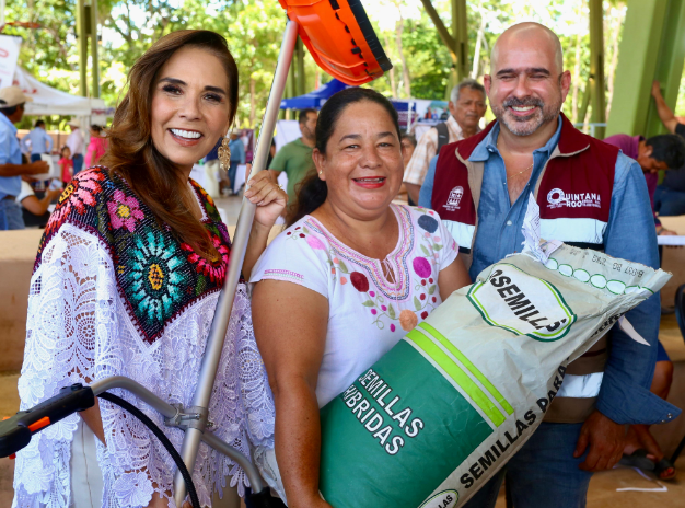 La Gobernadora explicó que este año se han destinado más de 157 millones de pesos a quienes trabajan la tierra y el mar, que es dinero del pueblo que regresa al pueblo convertido en semillas, equipos, animales, sistemas de riego y tarjetas de apoyo, lo que permite cerrar las brechas de desigualdad y que la prosperidad llegue a todos los hogares de Quintana Roo.
