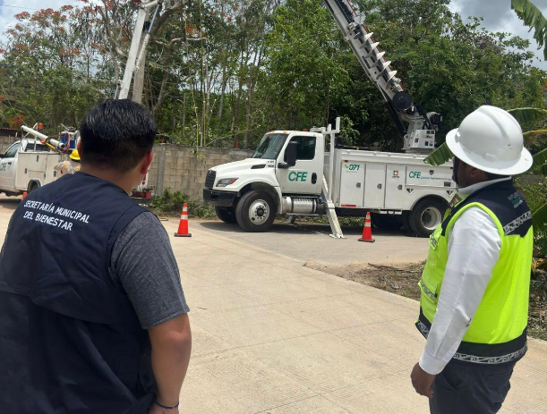 El gobierno de Puerto Morelos mantiene trabajos coordinados con la Comisión Federal de Electricidad (CFE) para impulsar el desarrollo de esta Delegación y llevar bienestar a la población con la renovación de sus cables de distribución de energía y la habilitación de un nuevo ramal para ampliar el área que recibe el servicio.