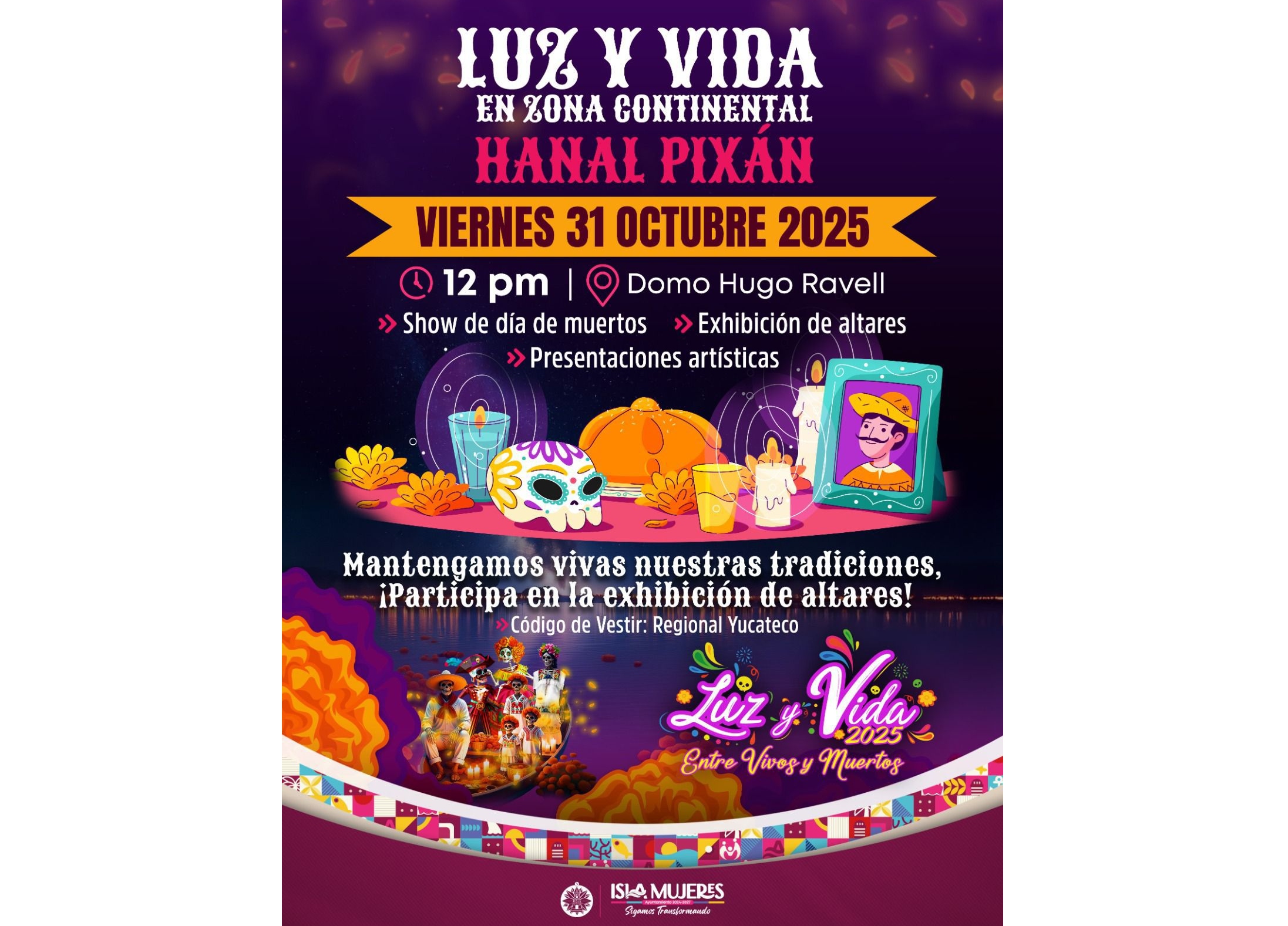 DIANA ALVARADO 28 DE OCTUBRE 2025.— El Gobierno de Isla Mujeres, encabezado por la Presidenta Municipal, Atenea Gómez Ricalde, invita a todas las familias y visitantes a participar en el Festival “Luz y Vida, entre Vivos y Muertos”, este viernes 31 de octubre a las 12:00 horas en el Domo “Hugo Ravell”, en la Zona Continental.
