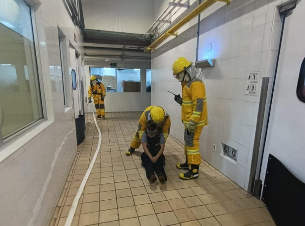 El ejercicio inició a las 10:55 horas, cuando sonó la alarma de incendio en el área de cocina central, se procedió a la evacuación de 580 colaboradores y se atendió con éxito a dos lesionados simulados: una persona con quemaduras y otra en paro respiratorio, demostrando la capacidad de respuesta y atención inmediata ante emergencias.