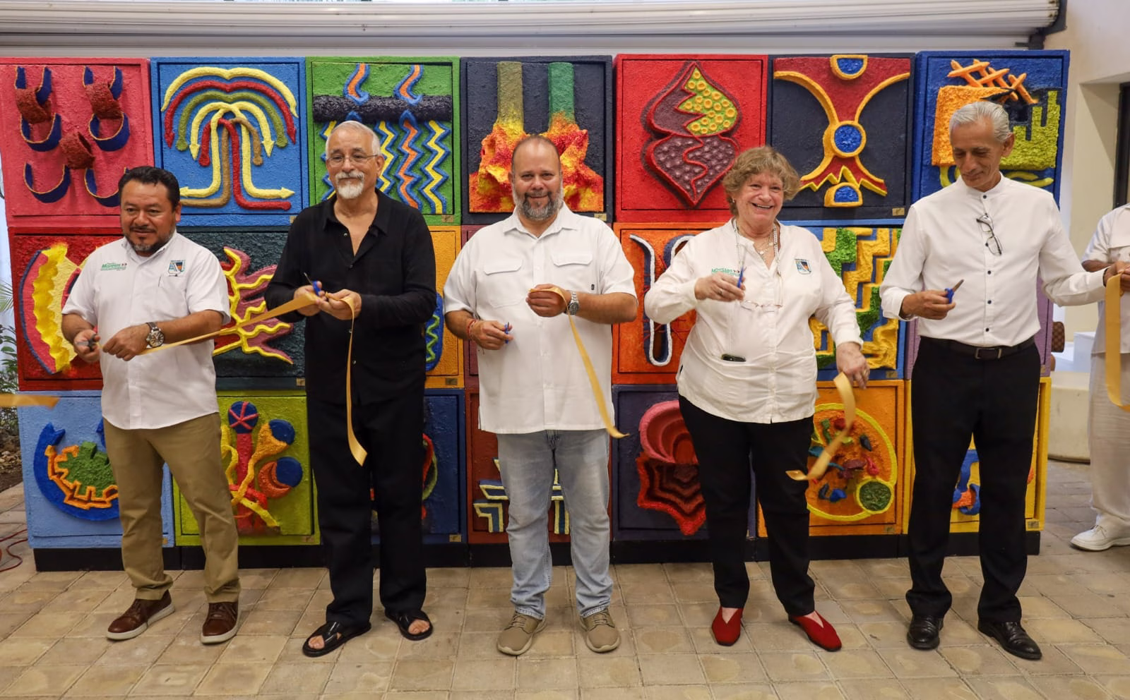 DIANA ALVARADO 8 DE ABRIL 2026.— En el marco de la conmemoración del décimo aniversario de la creación del municipio, el gobierno de Puerto Morelos inauguró la exposición del artista plástico y arquitecto Horacio Cárdenas, integrada por las muestras “Oráculos de los Cubos” y “Cómo triunfar en la vida”, en el Centro Cultural y Museo de la localidad.