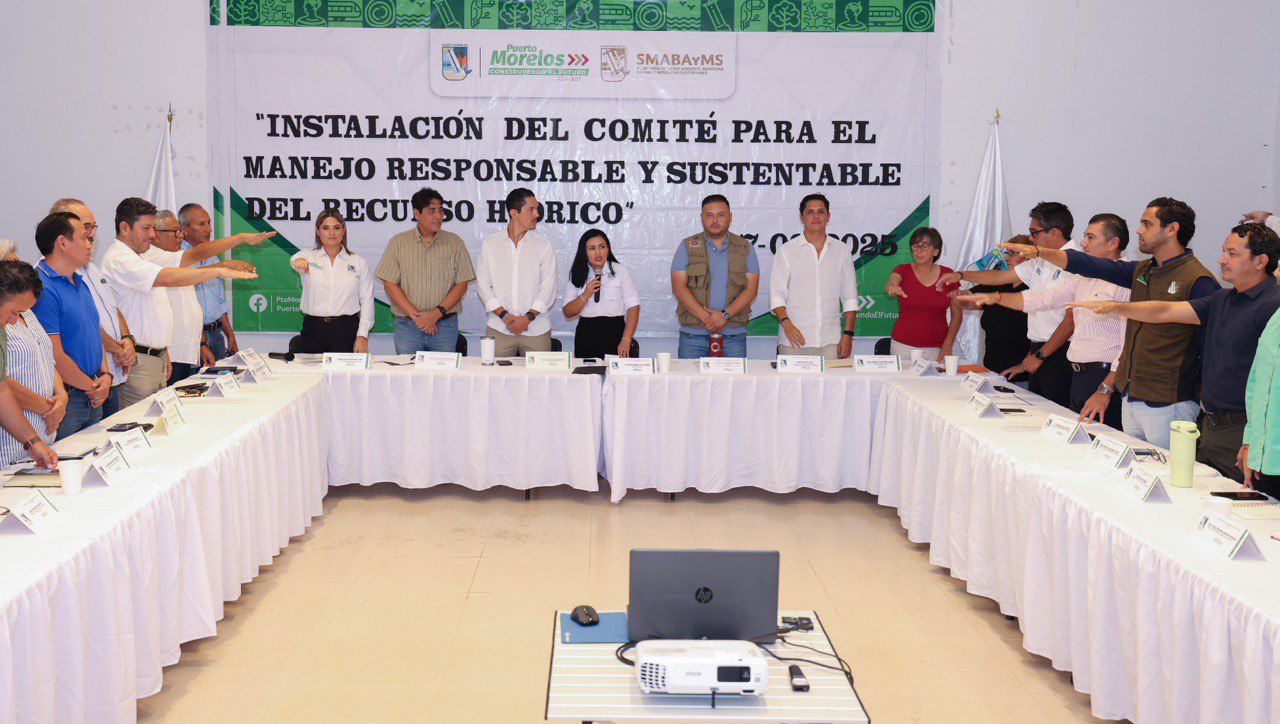 DIANA ALVARADO 27 DE AGOSTO 2025.— “El derecho humano al agua es fundamental, y con este, se desprenden diversas obligaciones para nosotros como autoridades, entre otras, la de diseñar e instrumentar políticas públicas para velar por el recurso hídrico”, pronunció la presidenta Blanca Merari Tziu Muñoz al instalar el Comité para el Manejo Responsable y Sustentable del Recurso Hídrico del municipio de Puerto Morelos.
