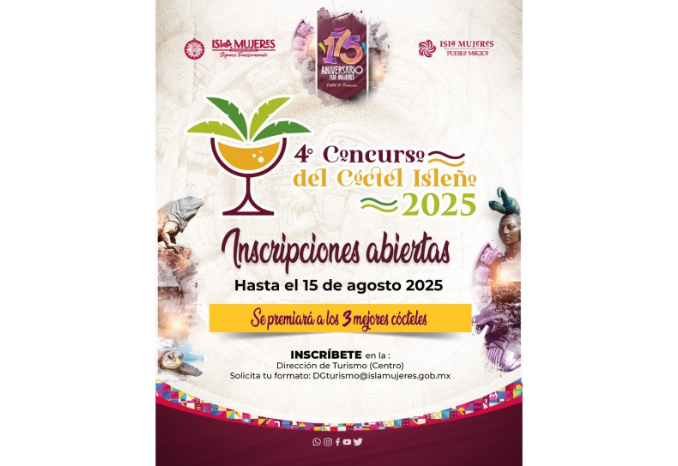 El Gobierno de Isla Mujeres, que encabeza la Presidenta Municipal, Atenea Gómez Ricalde, invita a las isleñas e isleños a participar en la cuarta edición del Concurso del Ceviche “El Cangrejito Playero” 2025 y el Concurso del Cóctel Isleño 2025.