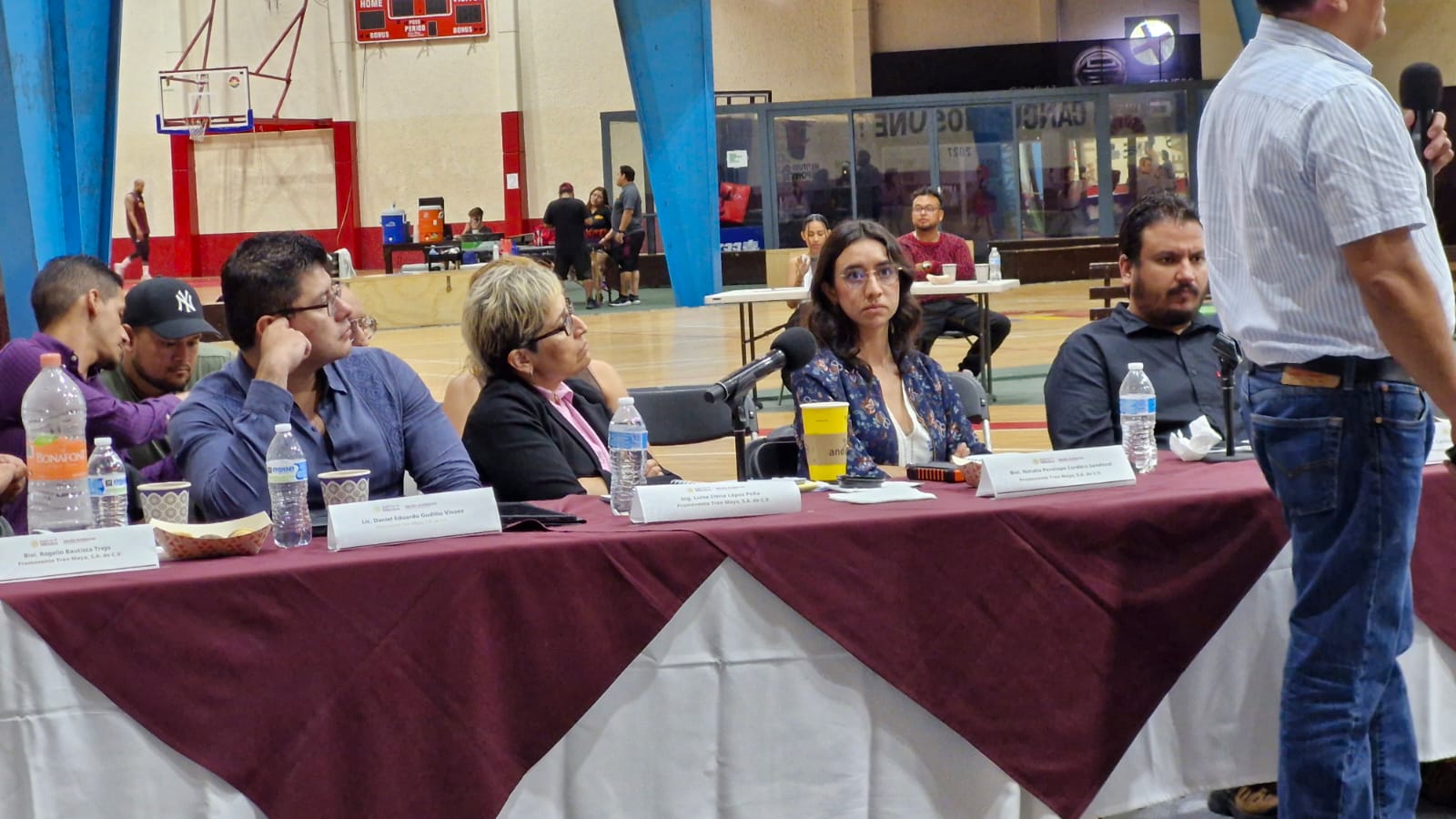 La presentación fue realizada en el gimnasio “Kuchil Baxal”, tal como fue convocada en la Gaceta Ecológica de la Semarnat del pasado jueves, en donde Luisa López, trabajadora del área de gestión ambiental del Tren Maya, realizó un resumen del proyecto, y en donde se permitió que personas inscritas tuvieran una intervención.