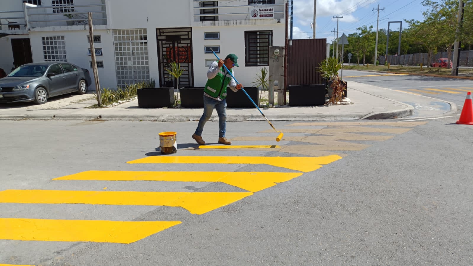 DIANA ALVARADO 25 DE AGOSTO 2025.— Como parte de las acciones coordinadas con la Dirección de Tránsito Municipal, la Secretaría de Servicios Públicos en Puerto Morelos, llevó a cabo la pinta de franjas amarillas en diversas calles de la ciudad, para el reforzamiento de la seguridad vial, dio a conocer el titular Leonel Salazar Trejo.