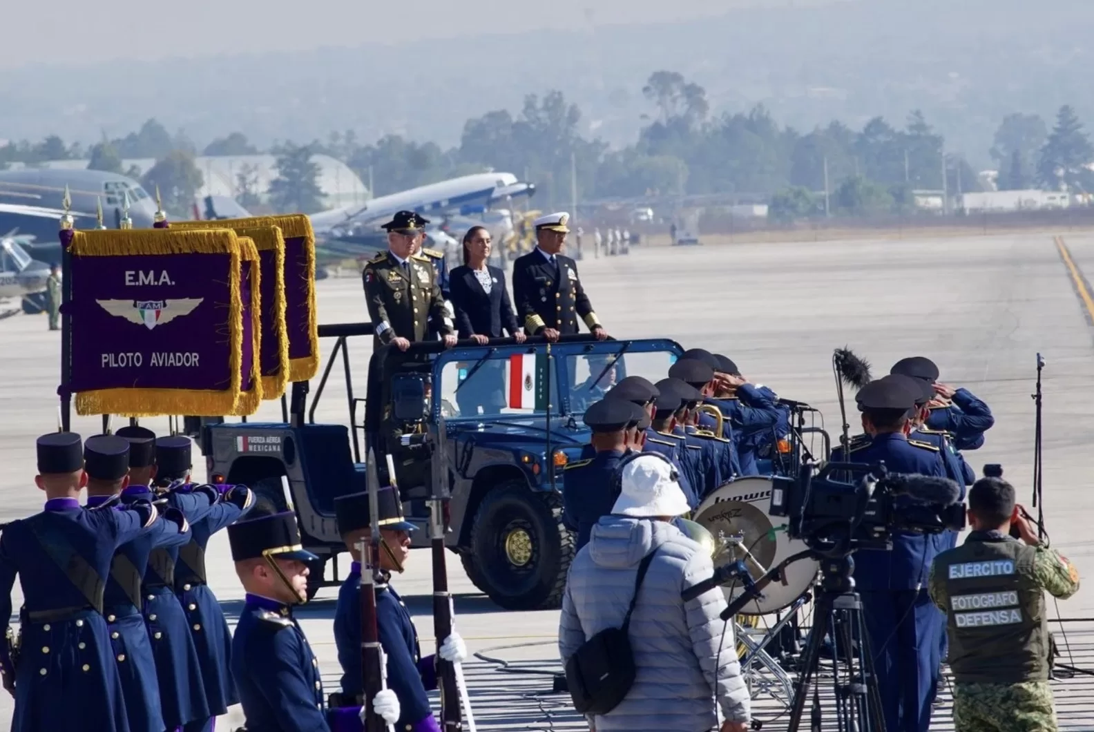 “Hoy en particular rendimos homenaje a la Fuerza Aérea Mexicana, una institución que encarna ese espíritu histórico de servicio, entrega y compromiso con la gente y con la nación”.
