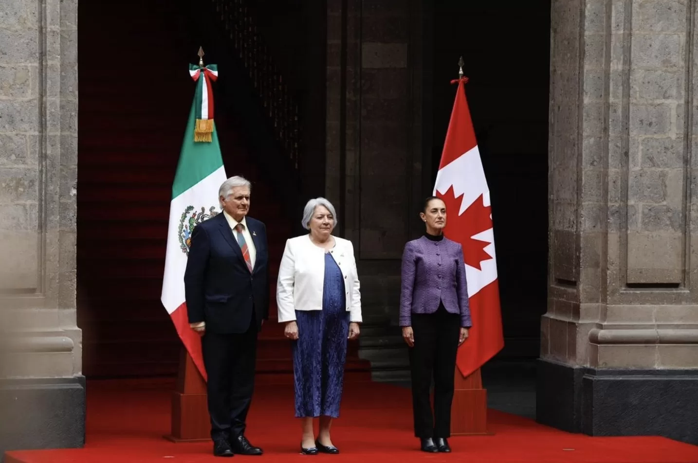 DIANA ALVARADO 20 DE ENERO.- La presidenta Claudia Sheinbaum dio la bienvenida oficial a la gobernadora general de Canadá, Mary Simon, en una ceremonia oficial en Palacio Nacional, pues Simon tiene carácter de Jefa de Estado.