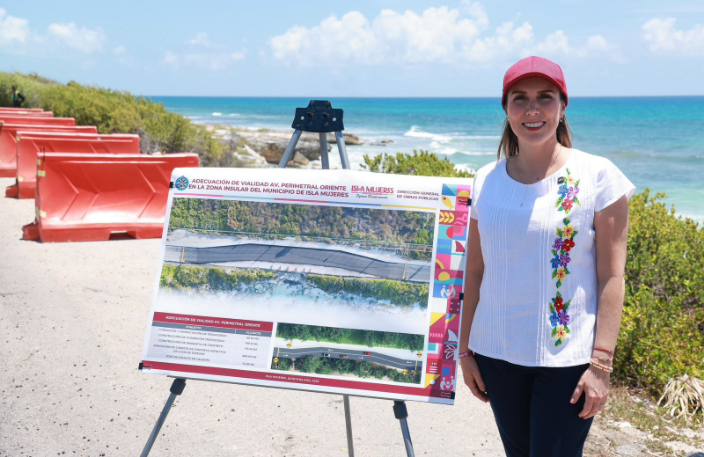 DIANA ALVARADO 09 DE JUNIO 2025.— Como parte del compromiso del Gobierno Municipal de Isla Mujeres con la seguridad y la movilidad de las isleñas e isleños y de los turistas que visitan el destino, la Presidenta Municipal, Atenea Gómez Ricalde, realizó un recorrido de supervisión en la obra de la vialidad alterna que se construye en la carretera Perimetral del Mar Caribe, frente al deslave originado en meses pasados por el paso del huracán “Helen”.