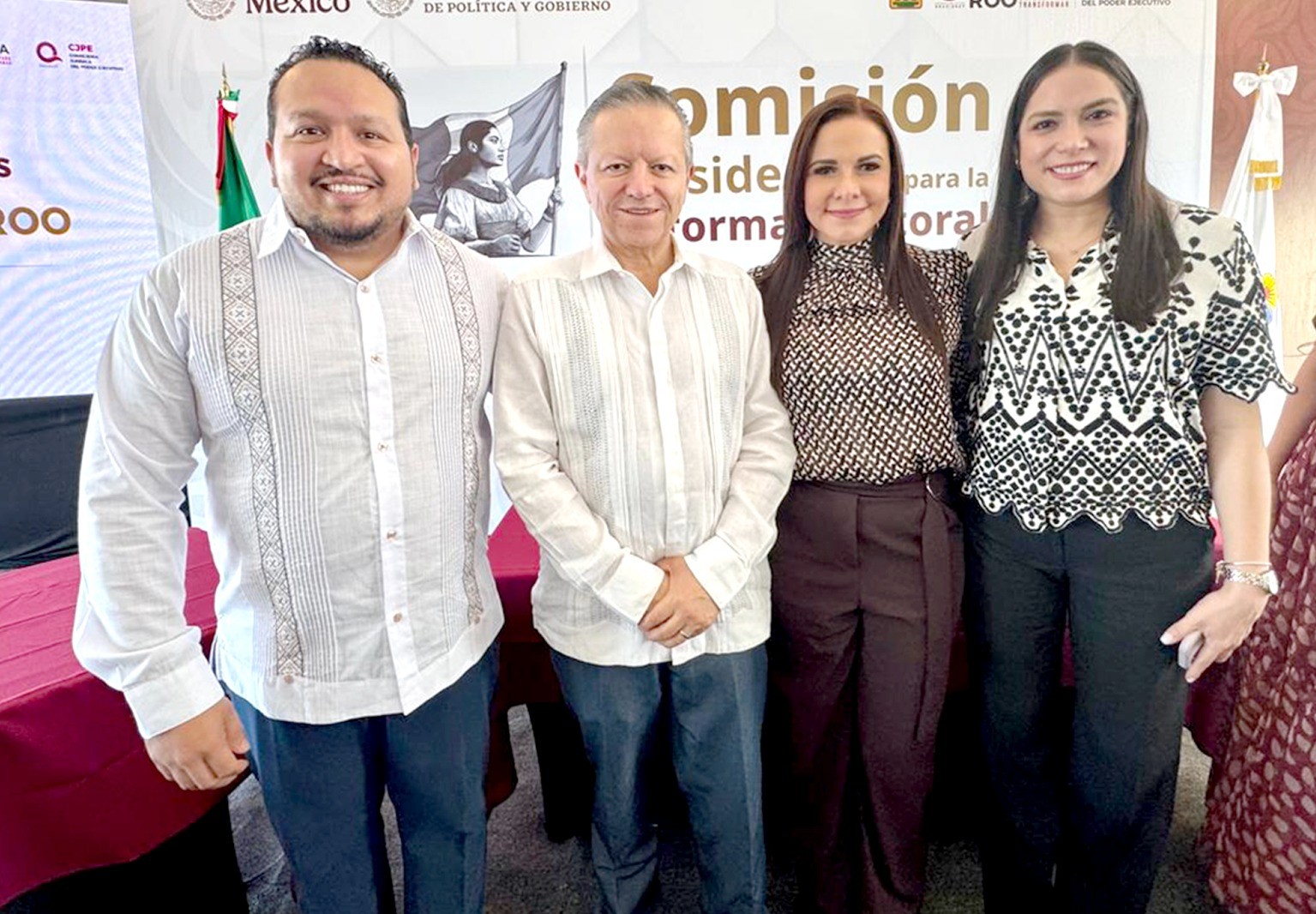 El evento, realizado en el Salón Constelaciones del Hotel Krystal Urban en Cancún, fue encabezado por la Gobernadora del Estado, Mara Lezama Espinosa, y el Ministro en retiro Arturo Fernando Zaldívar Lelo de Larrea, Coordinador General de Política y Gobierno de la Oficina de la Presidencia de la República, quien presentó la exposición de motivos de esta iniciativa de reforma electoral a nivel nacional.